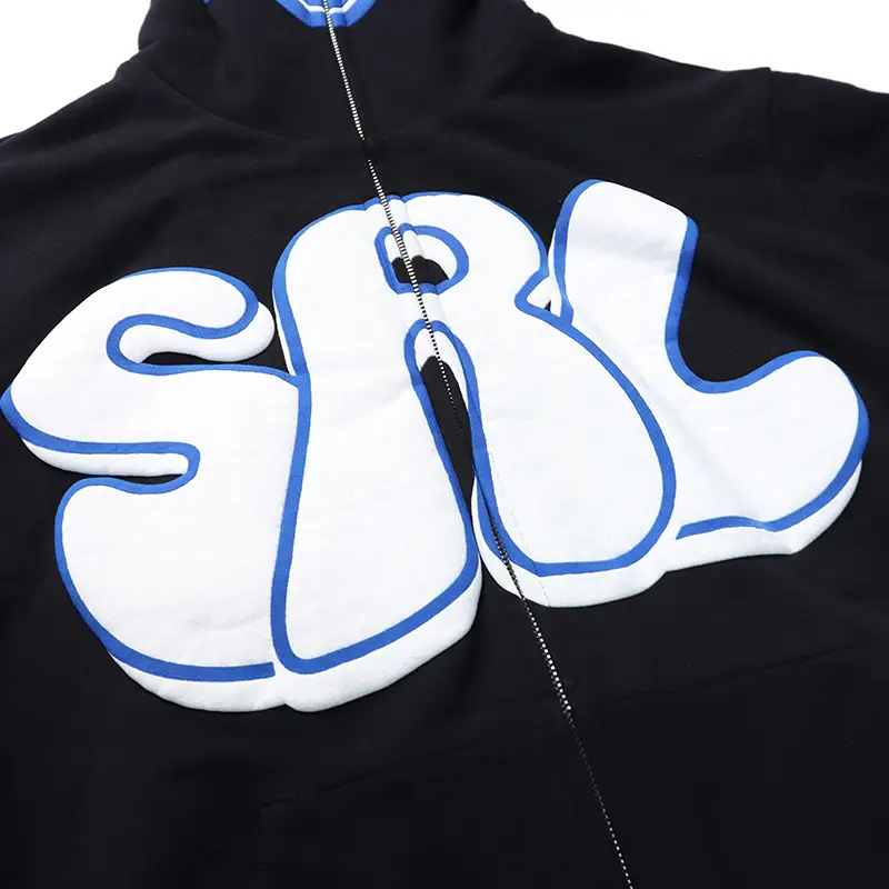 puff print hoodies full zip up hoodies
