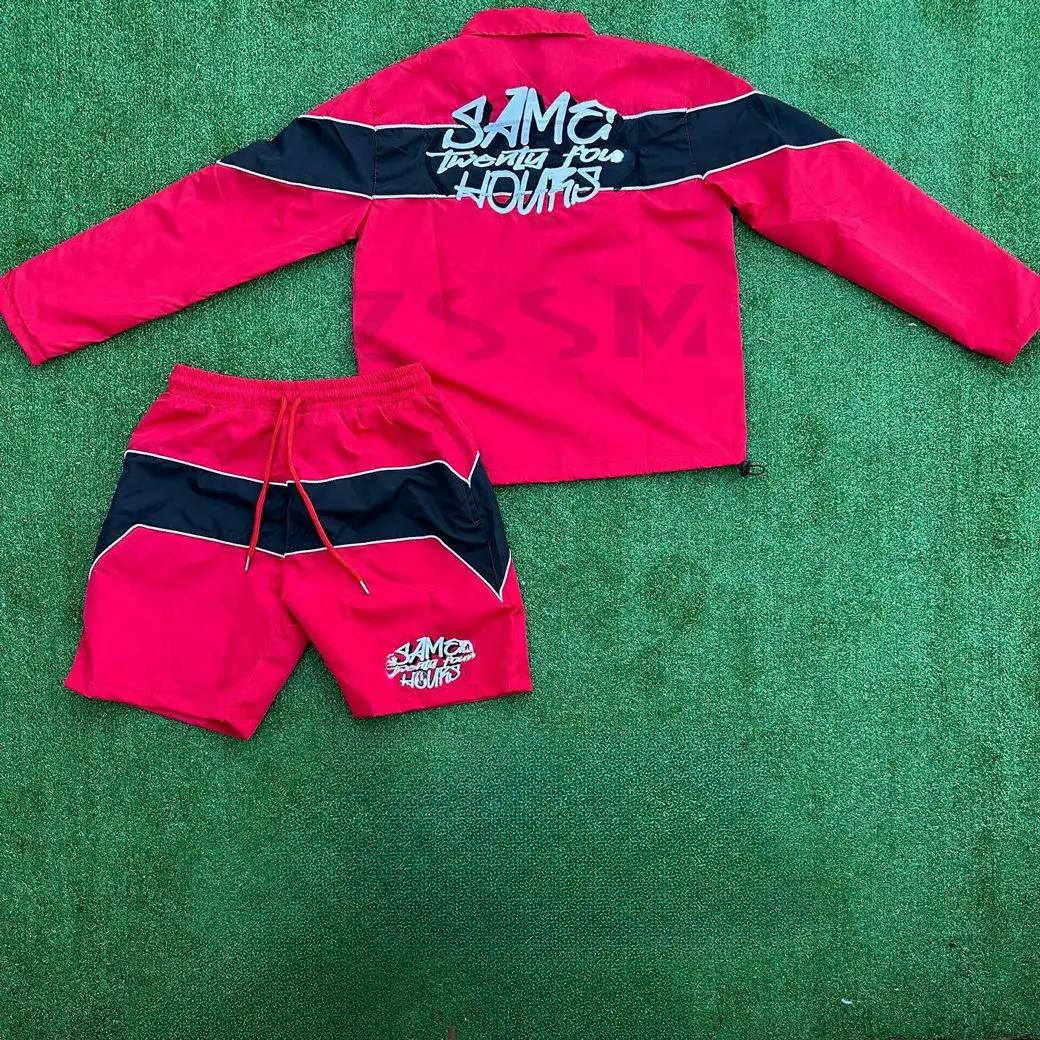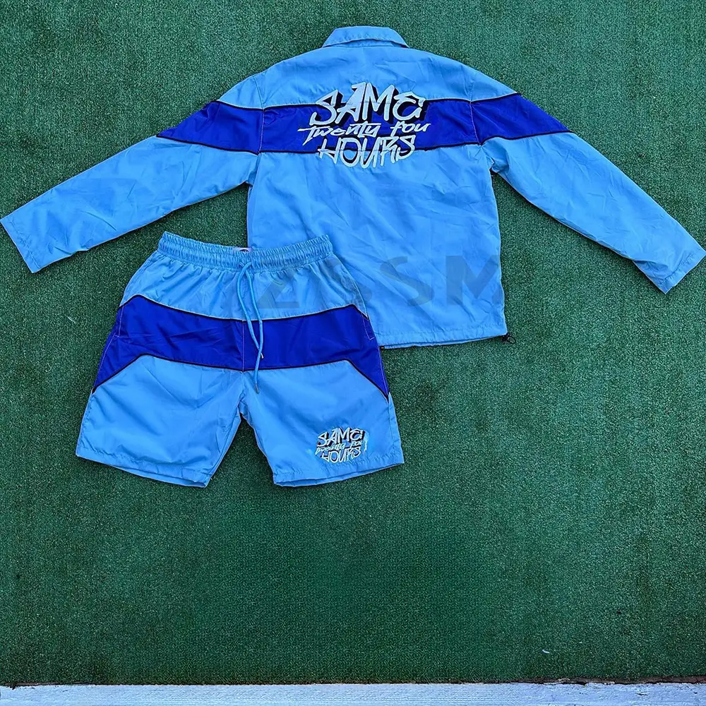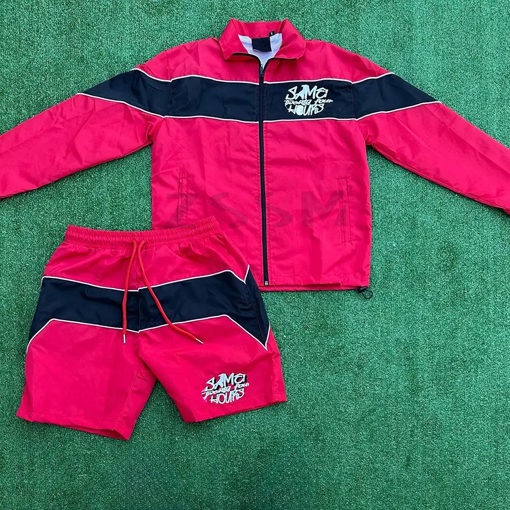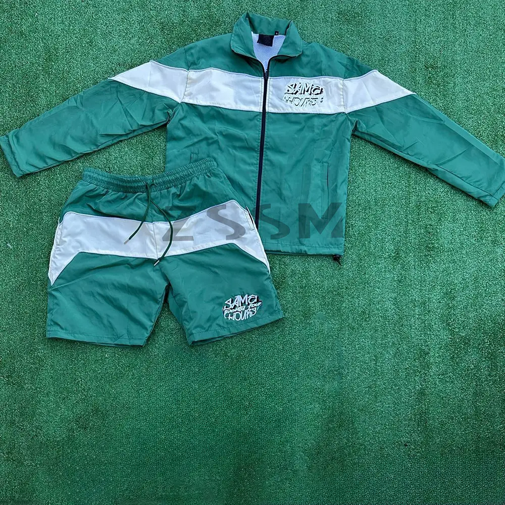 Custom Two Piece Splice Short Jacket Set Zip up Jacket Sweatsuit and Nylon Sweat Pants Shorts Tracksuit for Men