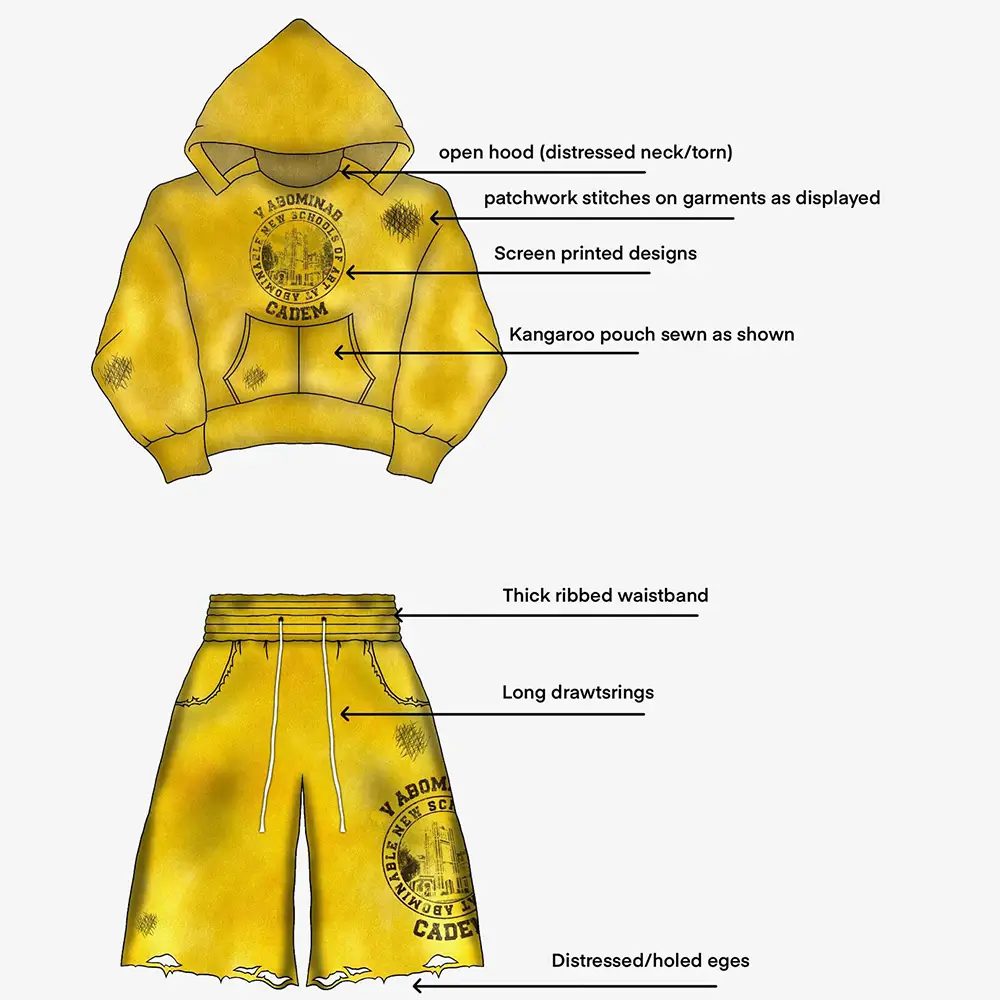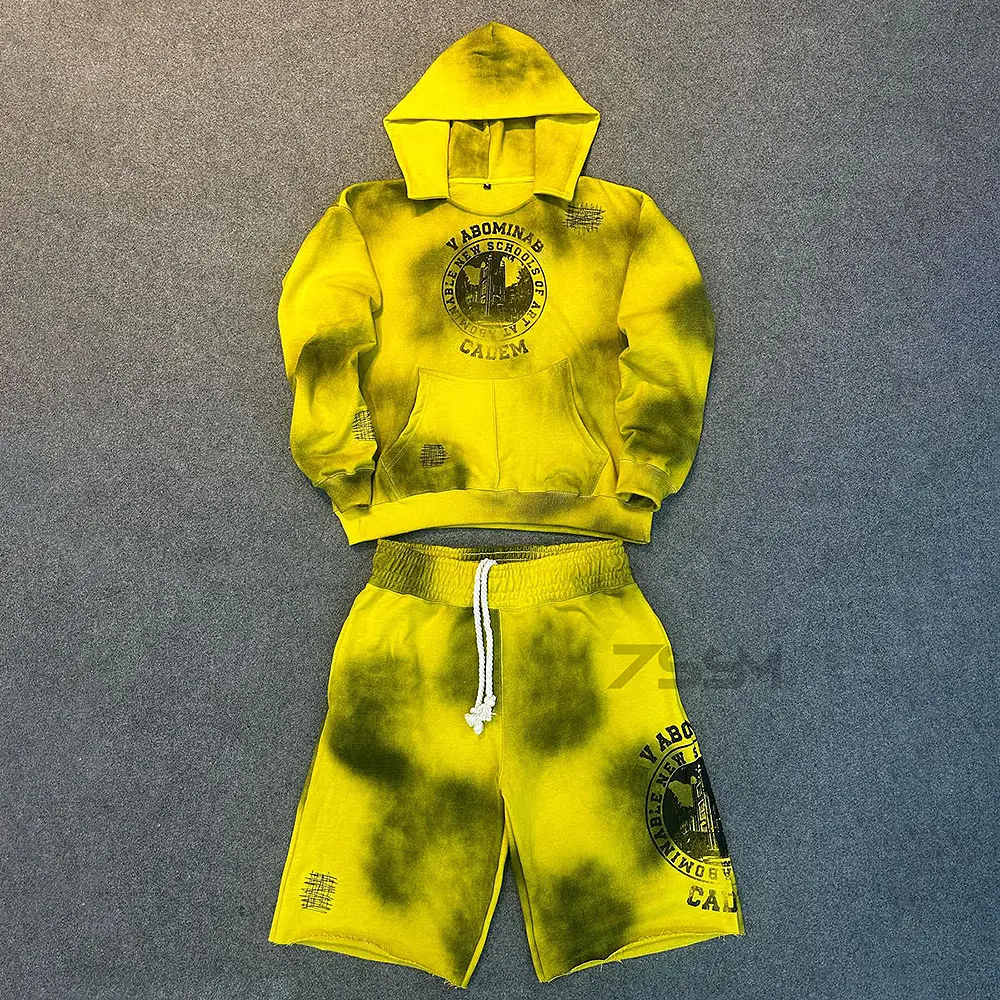 Men's Custom LOGO Digital Print Cotton Jogger Plus Size Winter Terry Vintage Suits Cotton Embroidered Baggy Shorts and Hoodie