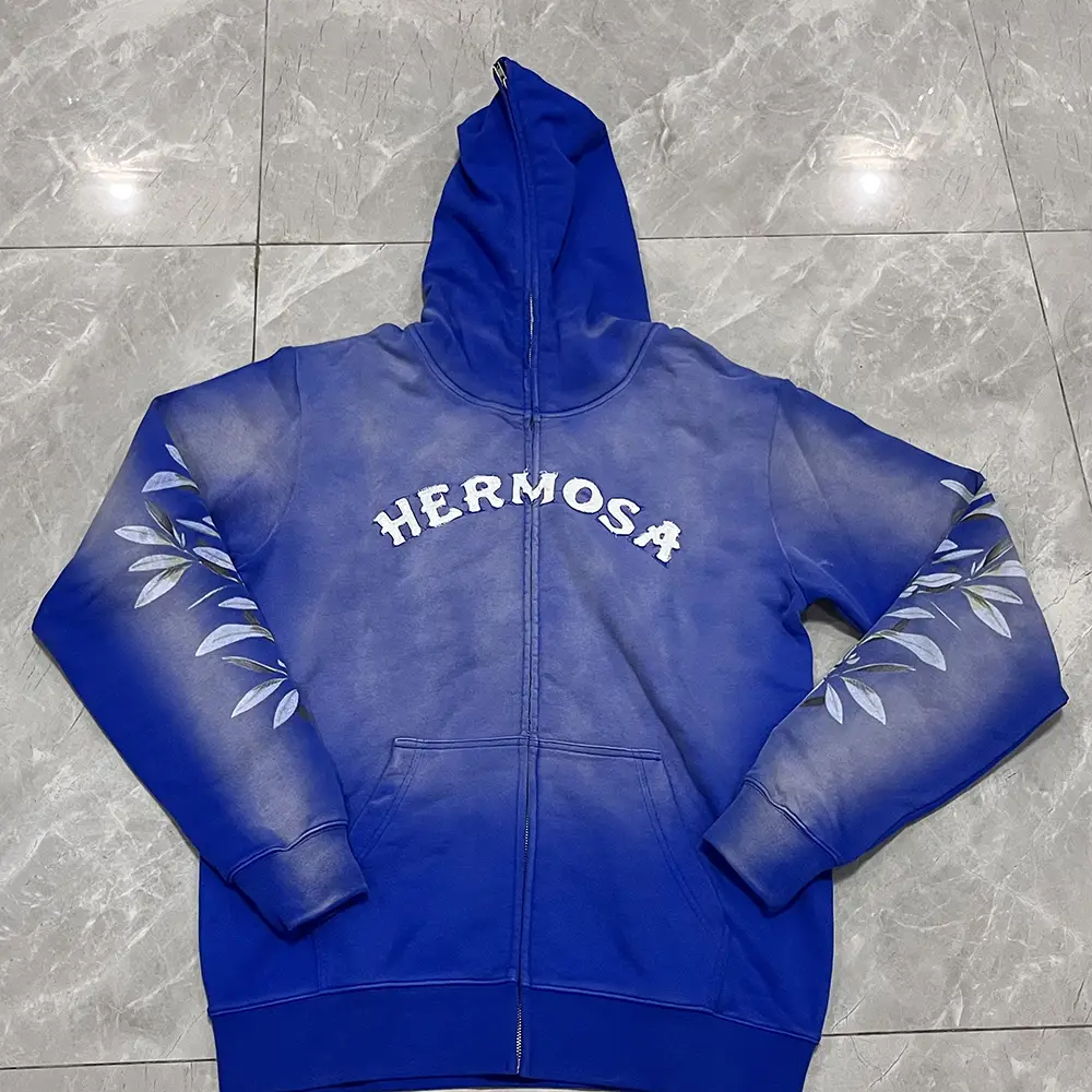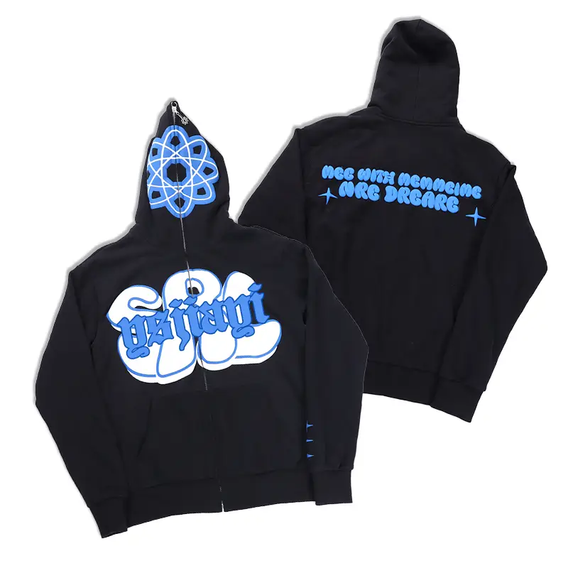 puff print hoodies full zip up hoodies