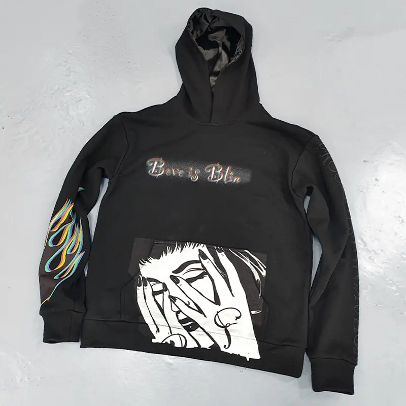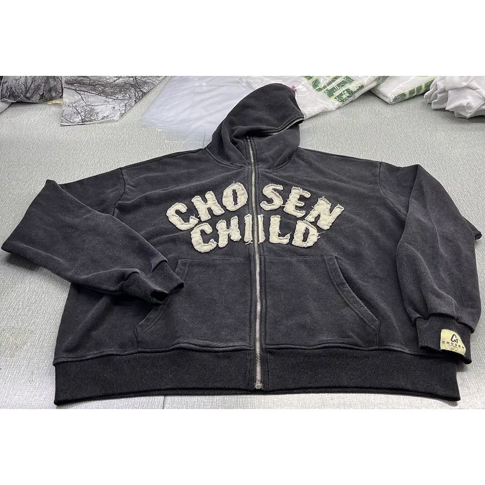 distressedappliqued embroidery hoodies