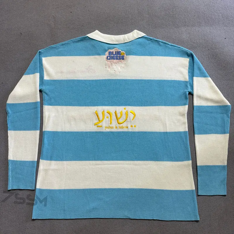 Wholesale Custom Embroidery Logo Men's Long Sleeve Rugby Jersey Sweater Oversized Striped Knitted Winter Polo Shirt Streetwear