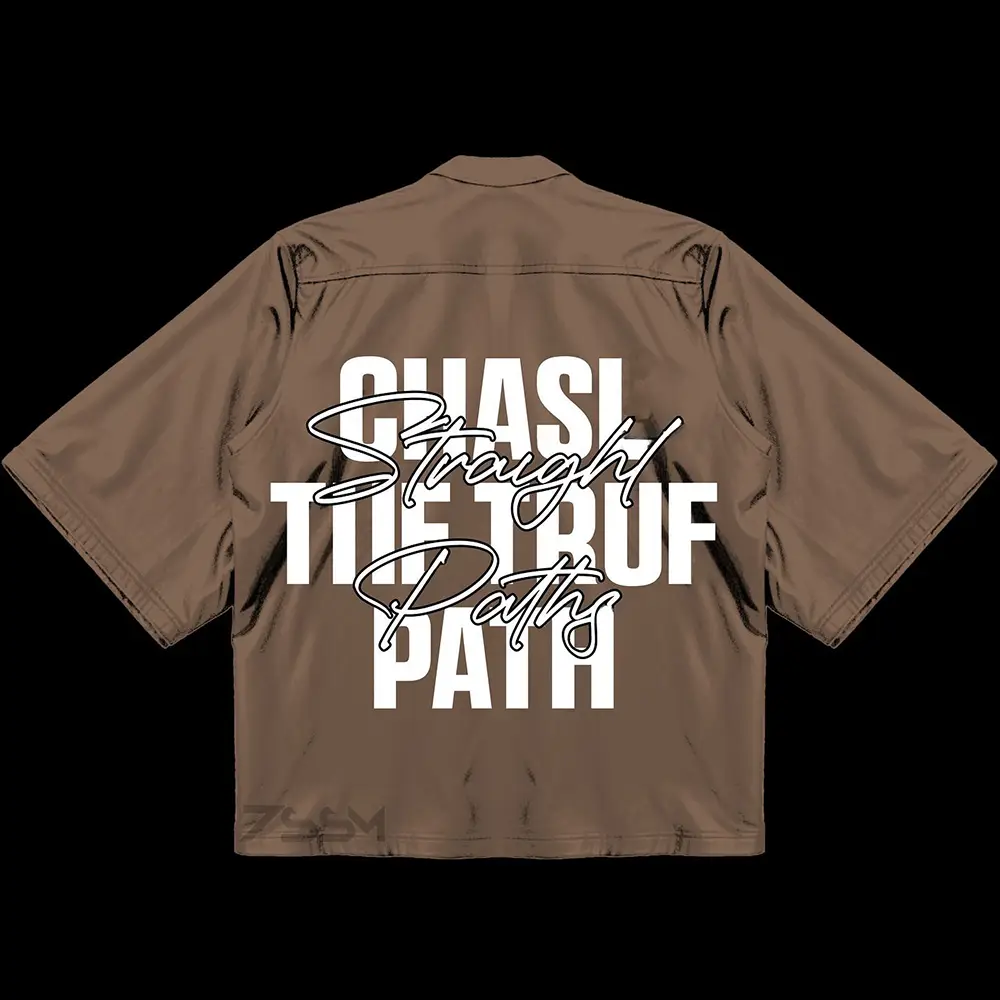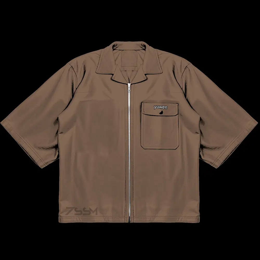 Custom Logo Summer Men's Boxy Pu Leather Zip-up Shirt with Lapel Collar and Blank Chest Pockets Short Sleeve Satin Fabric