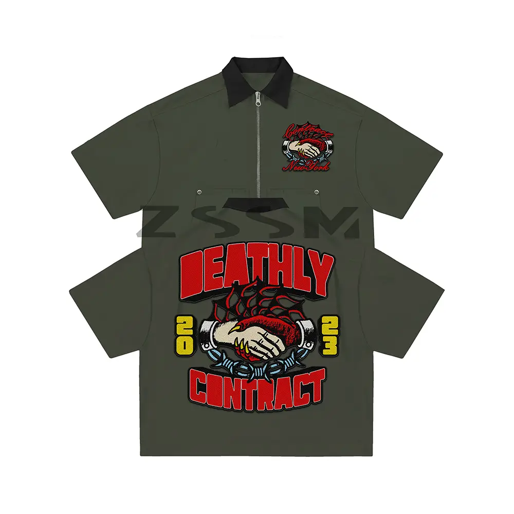 Men's Premium Nylon Zip T-Shirts Custom Crop Shirt with Embroidery Oversized Fit for Polo Shirts and Cargo T's