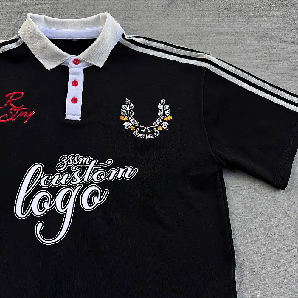 Custom Summer Heavyweight Cotton Sport Short Sleeve t Shirts Cropped Knitted Striped Boxy Embroidery Polo Shirts for Men