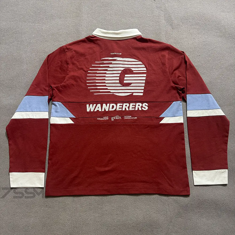 Custom Embroidery LOGO Cotton Sports Patchwork Striped Rugby Polos Man Oversized Boxy Long Sleeve Embroidered Polo Shirt for Men