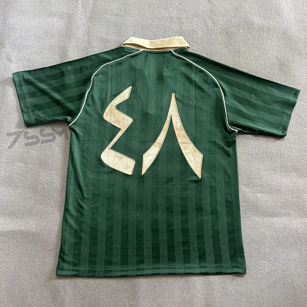 Wholesale Men's Polyester Retro Soccer Jerseys Custom Embroidery Oversized Boxy Streetwear Striped Short Sleeve Polo Shirts