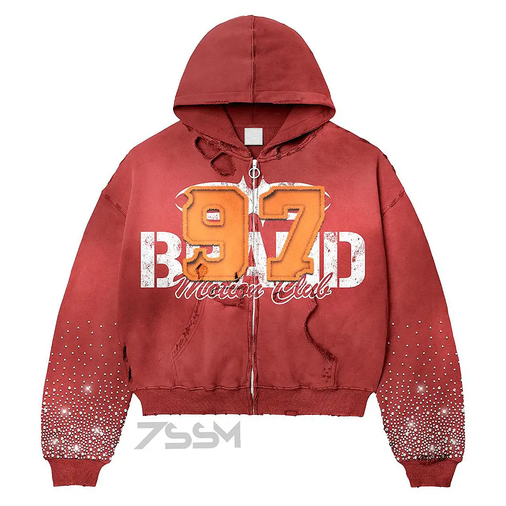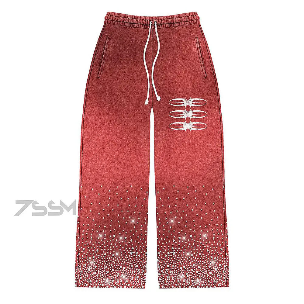 Custom Men's Track Suits Heavyweight Fleece Cotton French Terry Oversized Winter Rhinestone Hoodie and Flared Sweatpants Sets