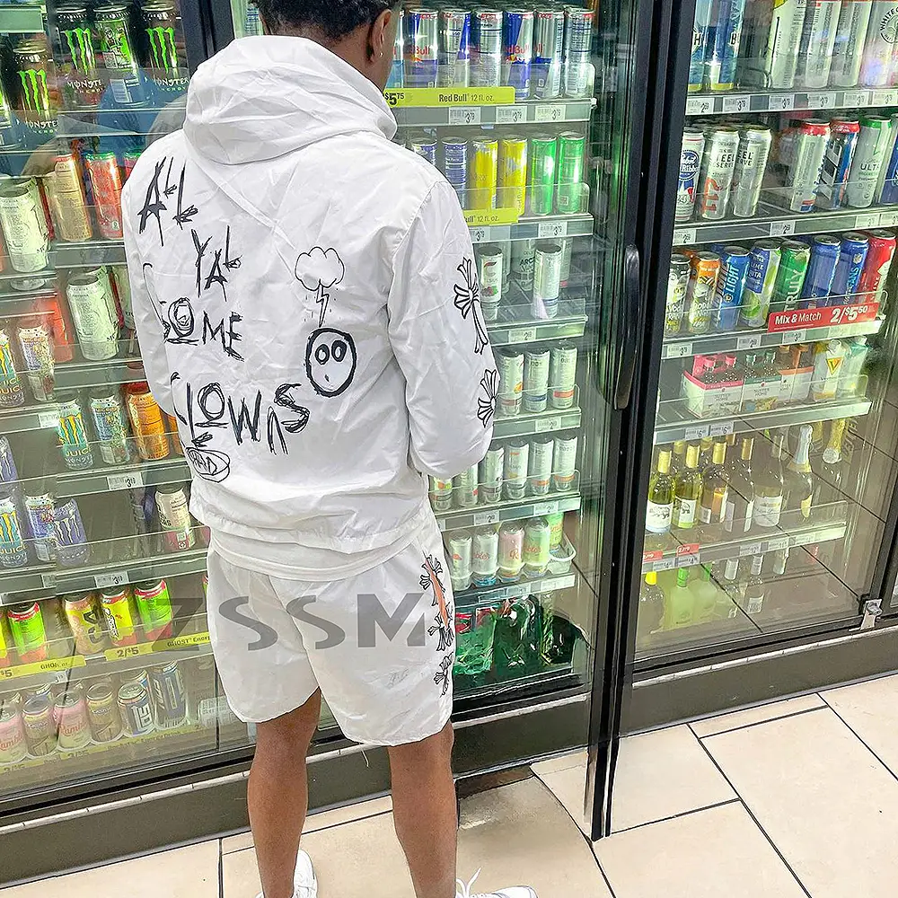 Men's New Arrival Velour Hoodie Short Set Breathable Windbreaker with Zip Autumn Two-Piece Printed Tracksuit Outerwear Set
