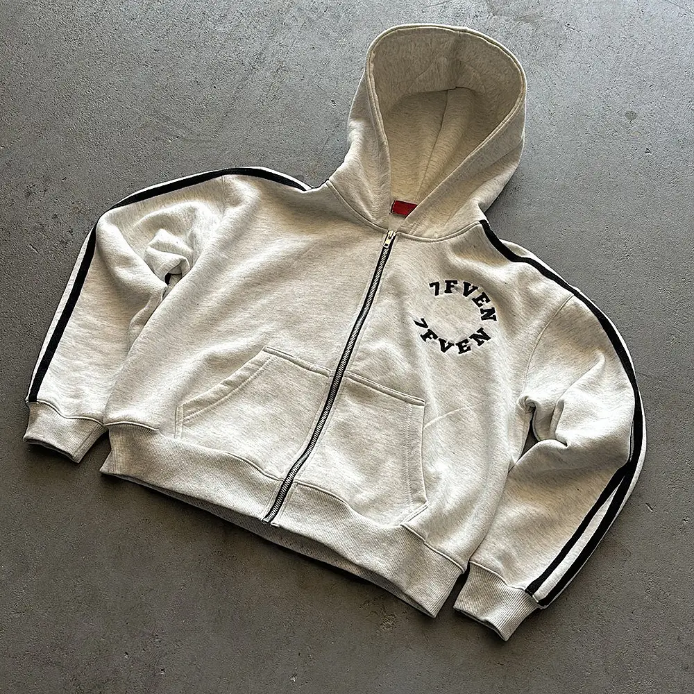 Men's Custom Embroidered Logo Stripe Zip-Up Hoodie and Sweatpants Set Winter Side Stripe Tracksuit for Men