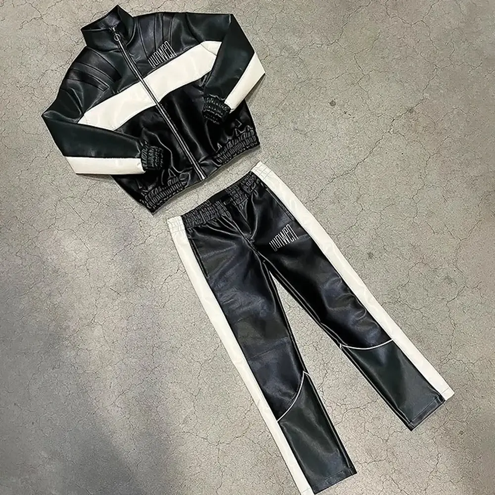 Customizable Men's Genuine PU Leather Winter Jacket Pants Set Zip-Up TrackSuit Embroidered Direct Thermal Outerwear Manufacturer