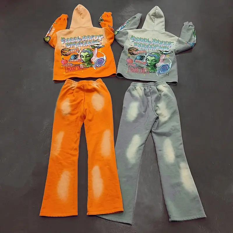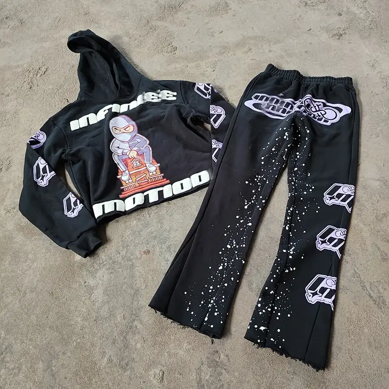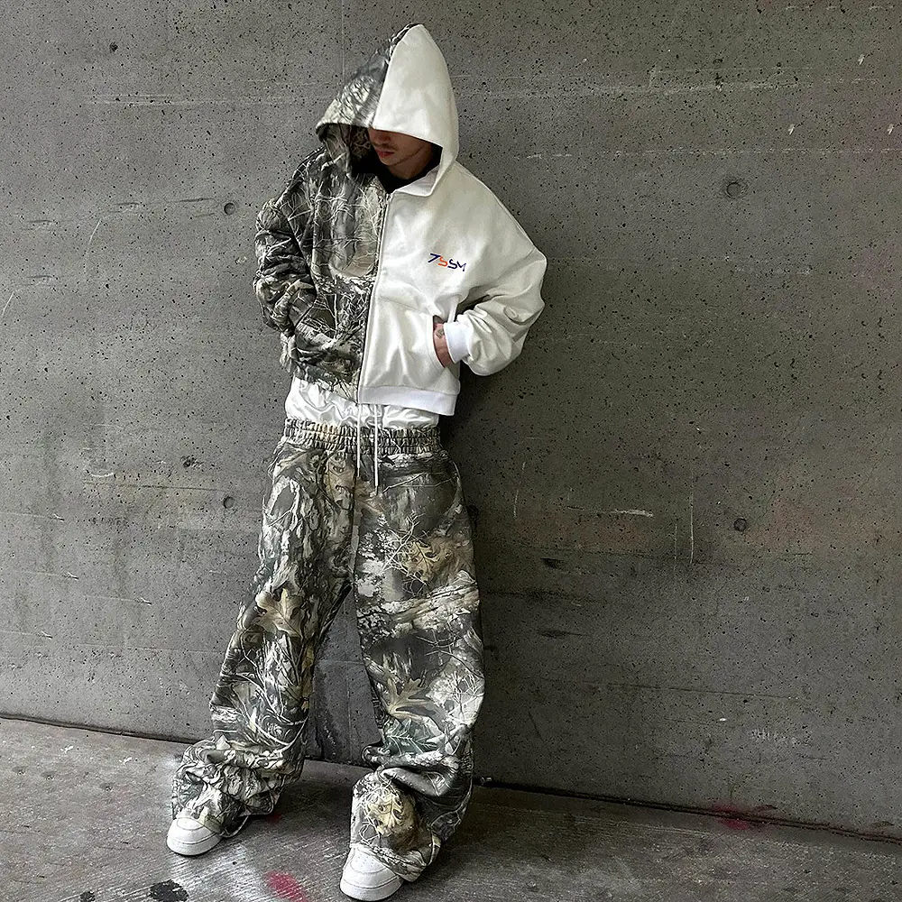 Men's Custom 500 Gsm Cotton Camouflage Hoodie and Sweatpants Set Zip-up Baggy Jogger Style Two Piece Sweatshirt Suit for Winter