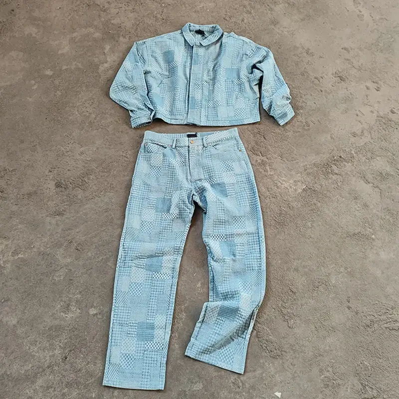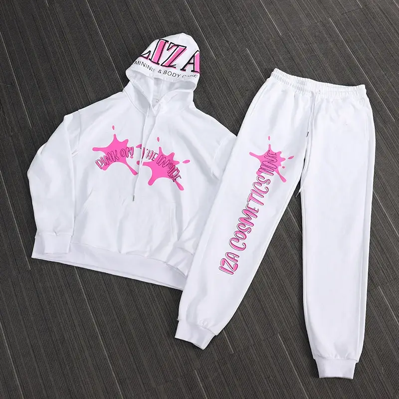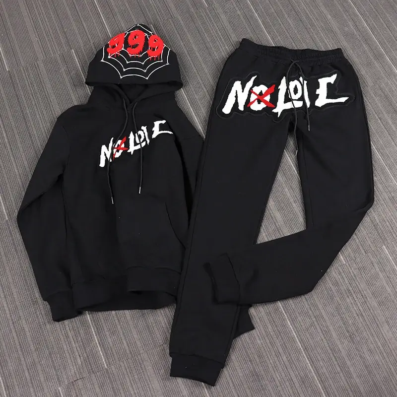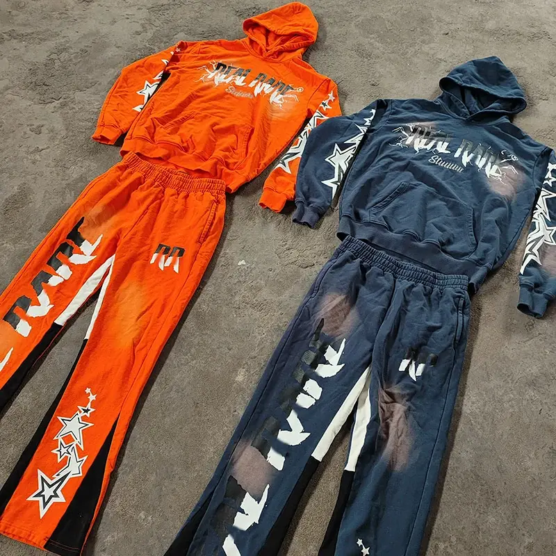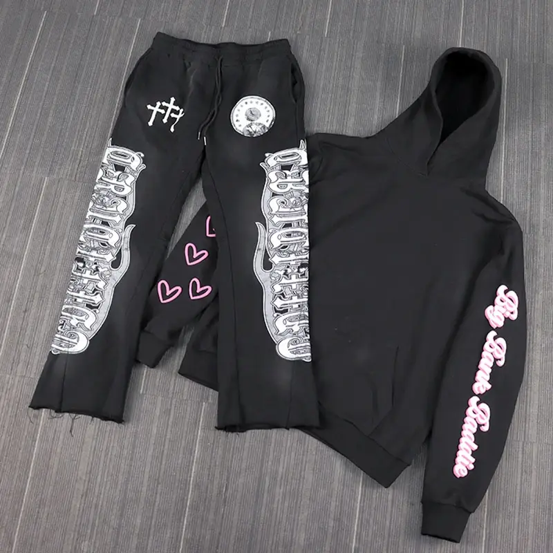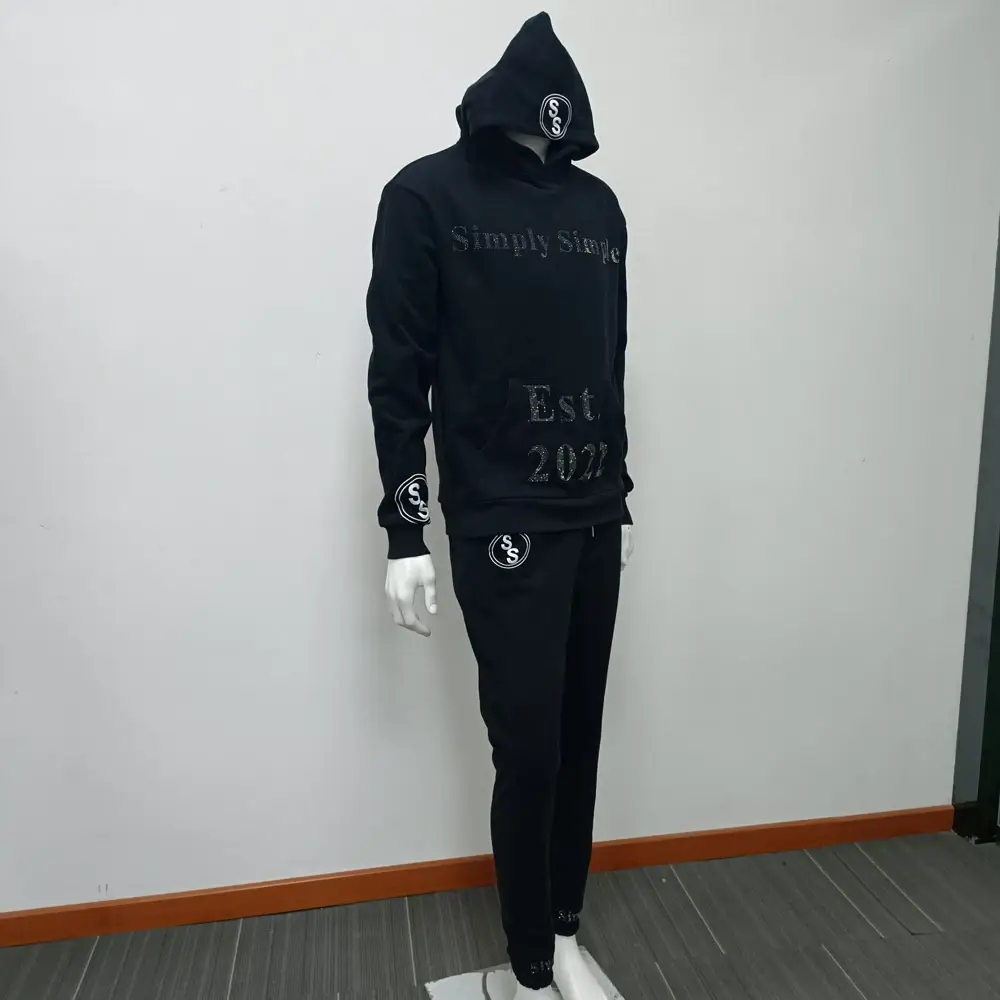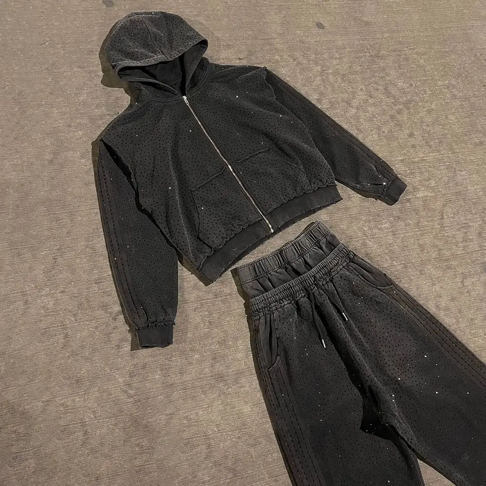 Custom Blank Full Print Rhinestone Zip up Hoodies Baggy Double Layer Waist Sweatpants Side Striped Jogger Set Track Suit for Men