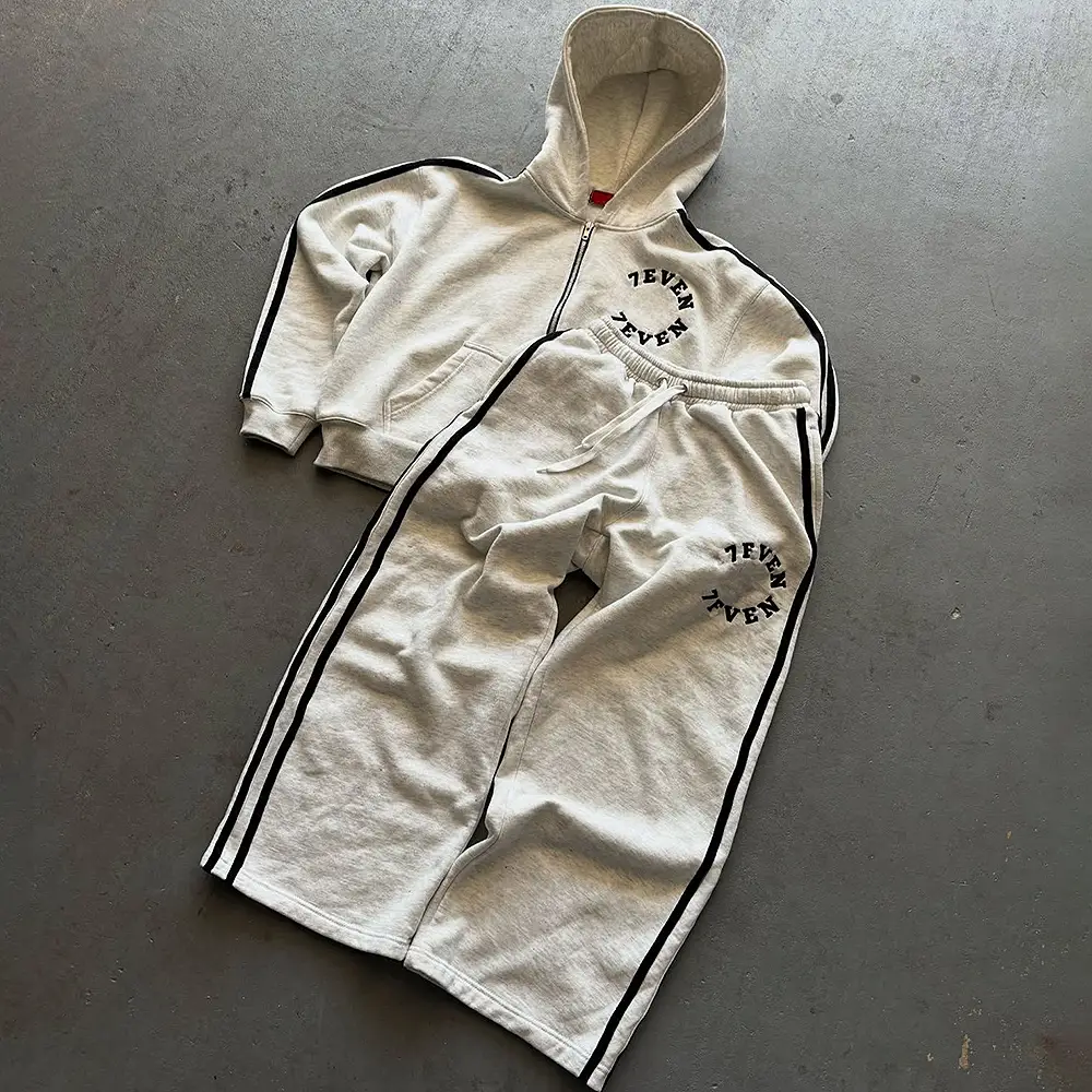 Men's Custom Embroidered Logo Stripe Zip-Up Hoodie and Sweatpants Set Winter Side Stripe Tracksuit for Men