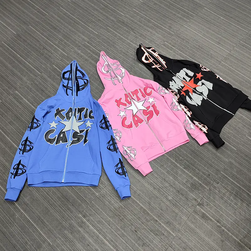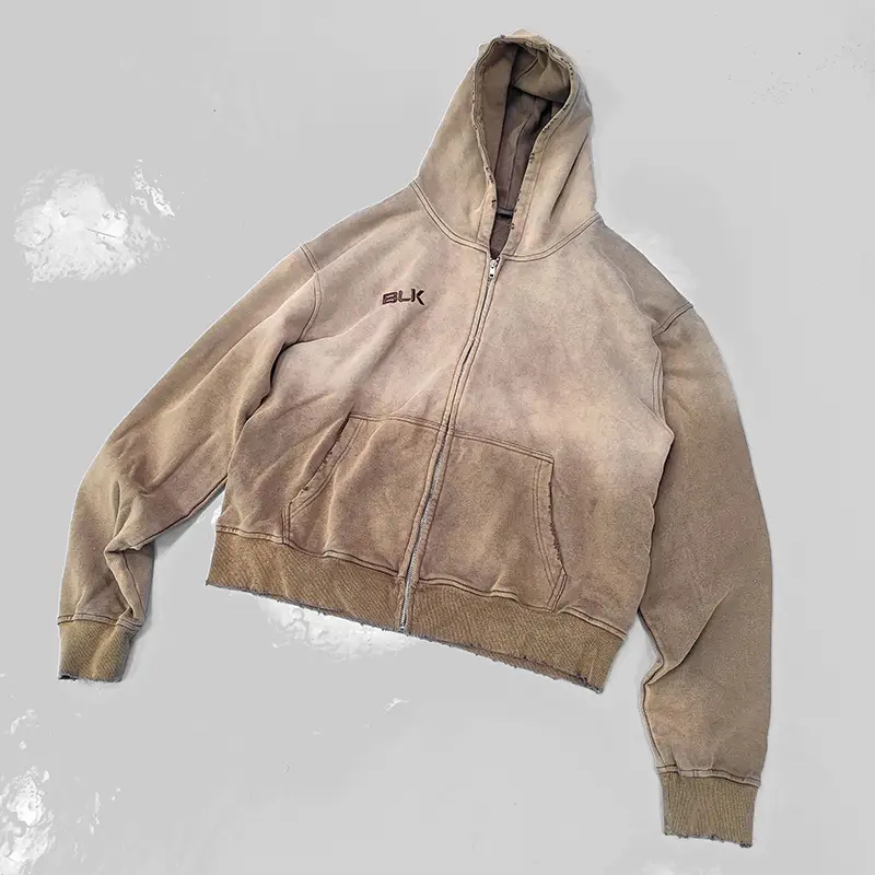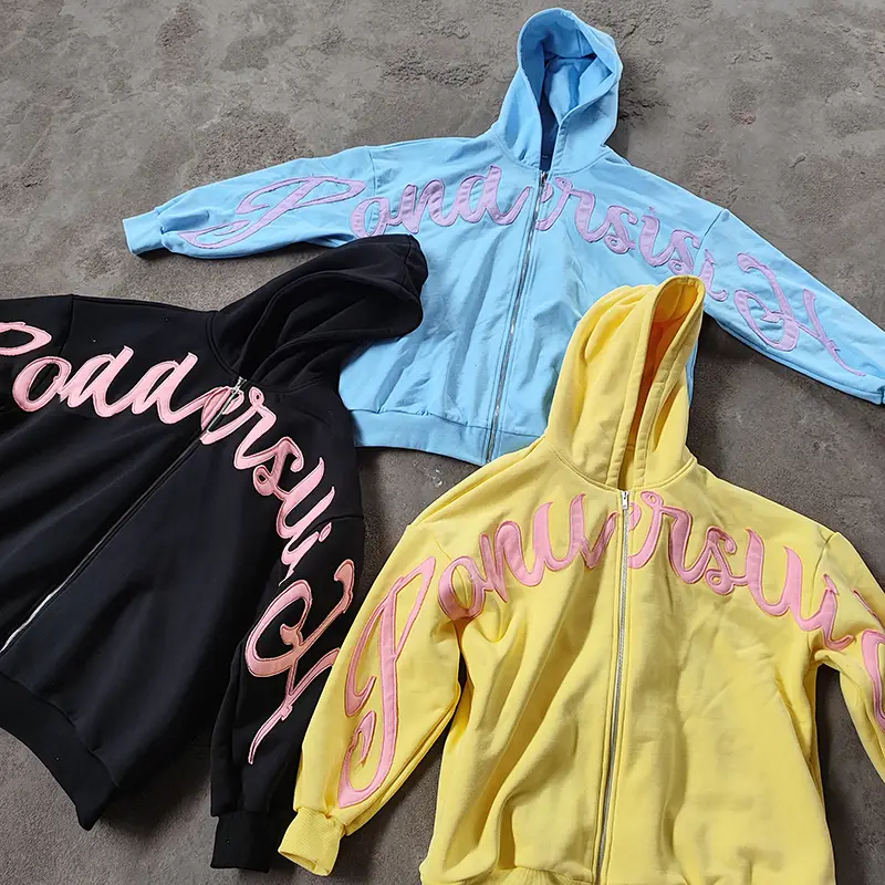 distressedappliqued embroidery hoodies zip up hoodies