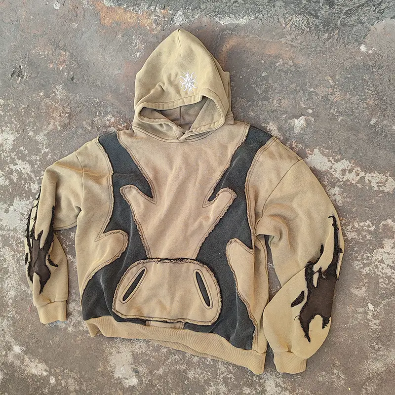 distressedappliqued embroidery hoodies