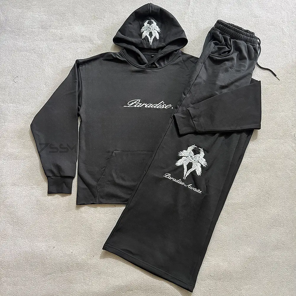 Custom Embroidery LOGO Wo Piece Sweatsuit Unisex Heavyweight Fleece Cotton Hoodie Sweatpants and Hoodie Set Tracksuits for Men